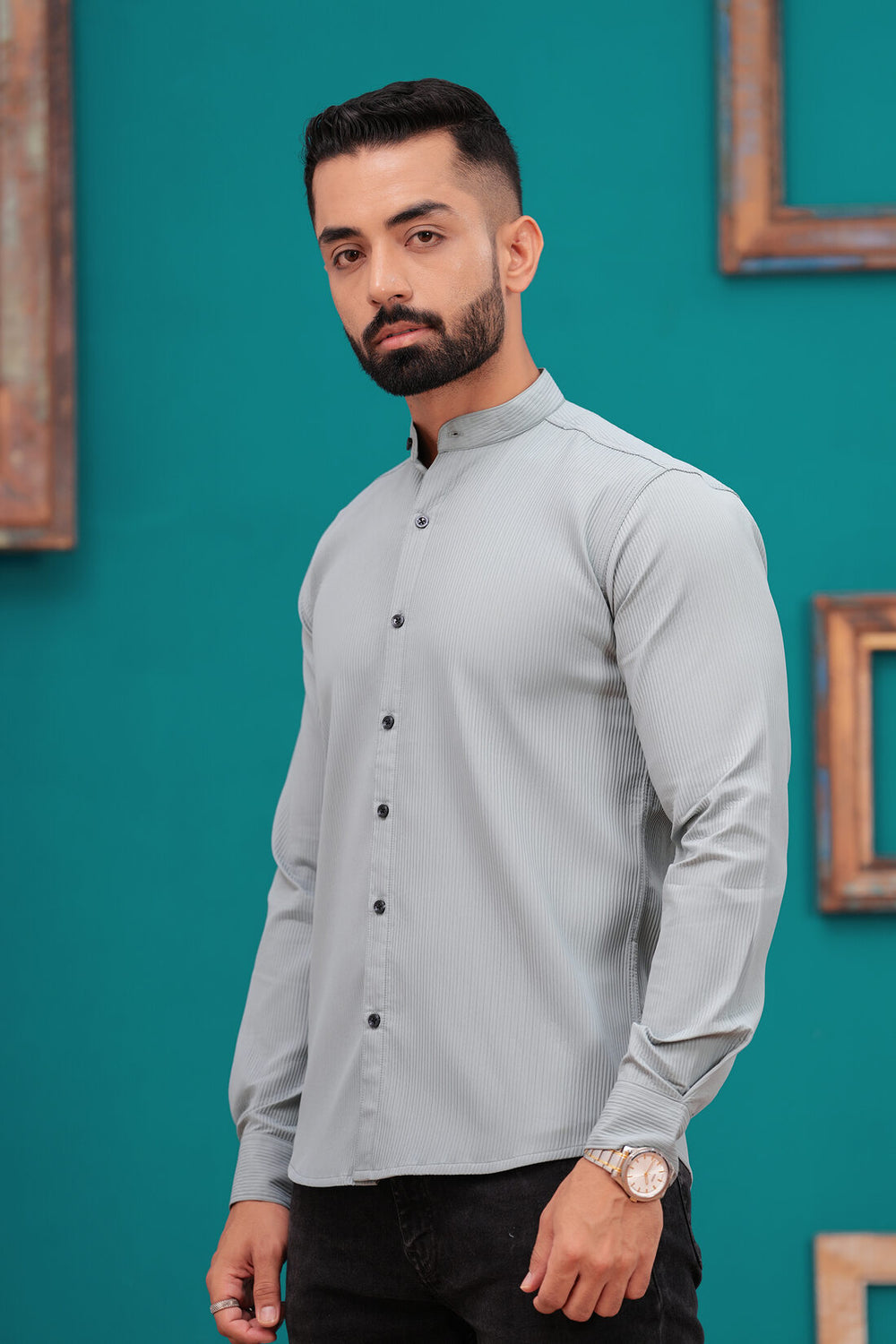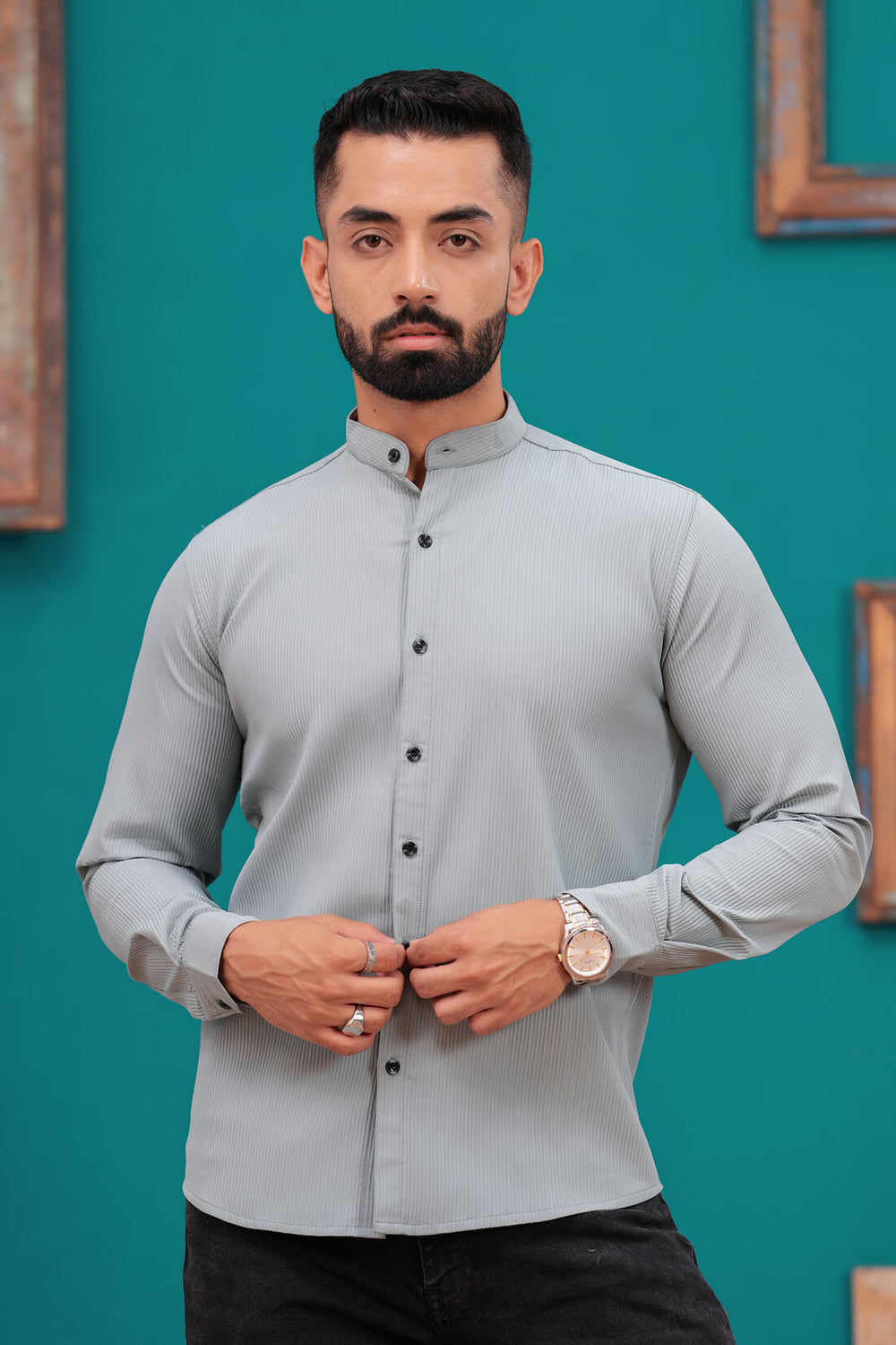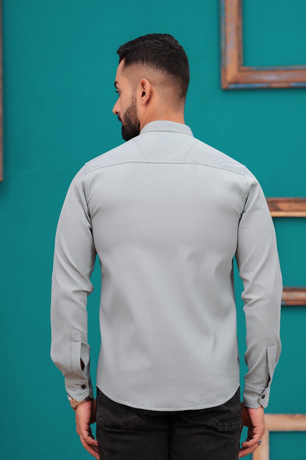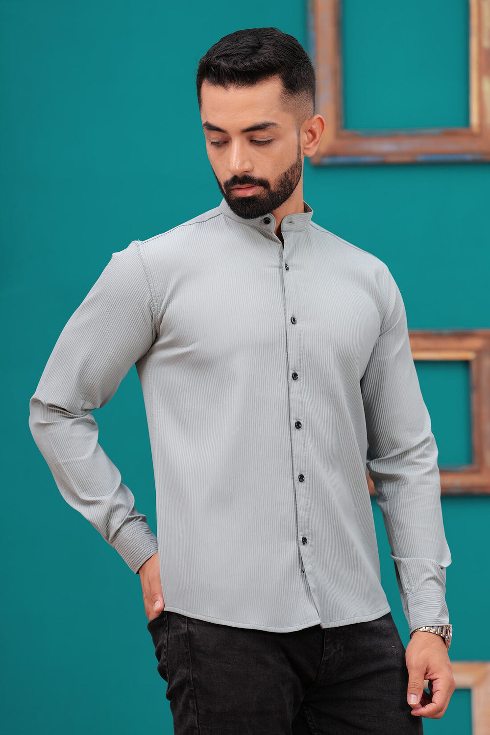 This expertly crafted FRENCH GREY TEXTURED STRIPES CASUAL SHIRT is designed for comfort and versatility. Made with high-quality materials, it offers a modern and stylish look that is perfect for any casual occasion. With its sleek design and durable construction, this shirt is a must-have for any wardrobe.