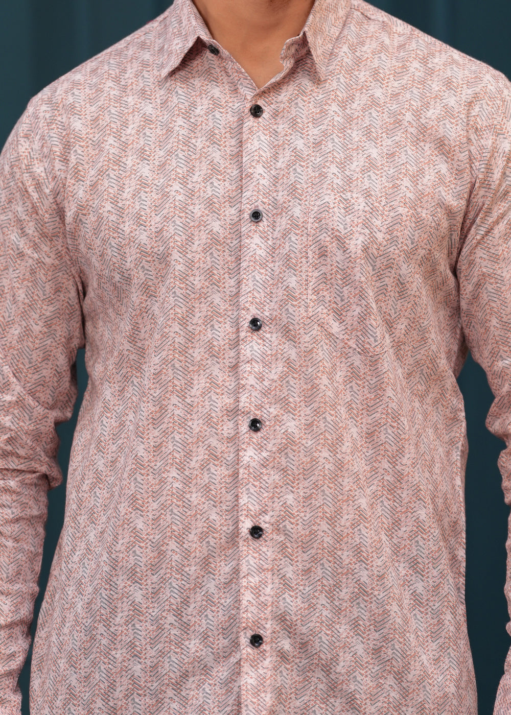Give a majestic lift to your look with this blue geometric pattern shirt. The shirt is crafted from fine 100% linen. It is a versatile staple and great for teaming with jeans for a more casual look or smartening up with a classic pair of chinos..